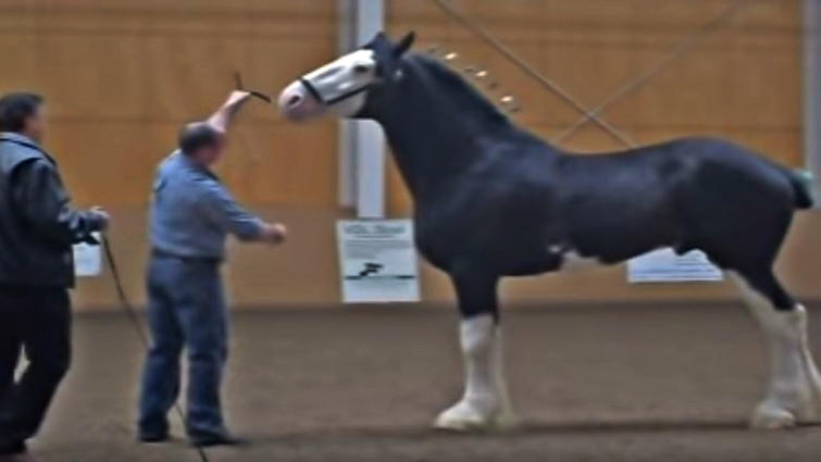 Owner Brings Black Friesian Into The Arena Showing Off Its Majesty