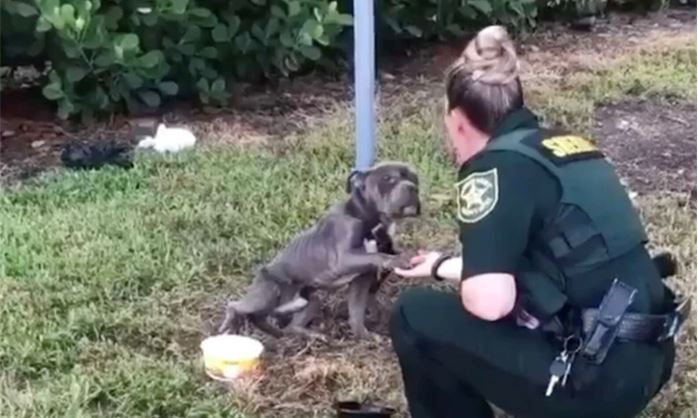 Tied Dog Reaches Out His Paw To Agent Who Came To Rescue Him