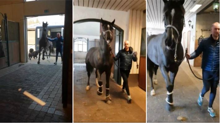 During his final gallop, Hayley walked on to the course and managed to grasp his reins as he crossed through the finish line. Despite being pulled over and carried for a short distance, the woman managed to hold on until the horse came to a complete stop.