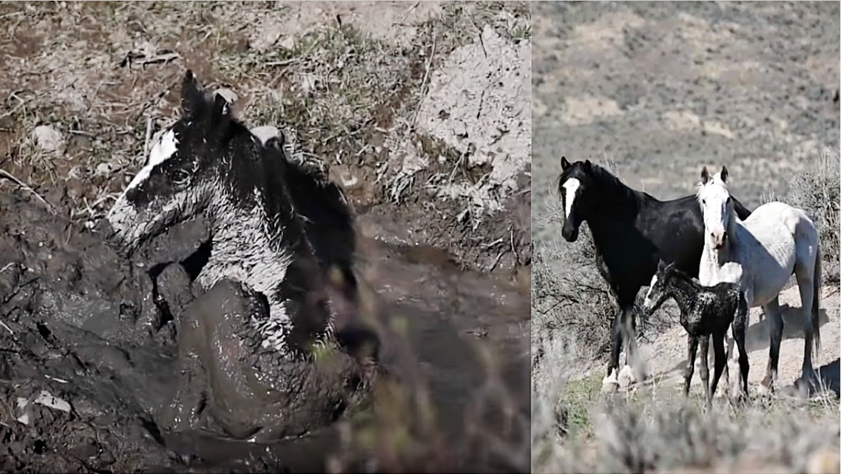 Rescuers Reunite Little Wild Foal With His Family After Getting Him Out Of The Mud