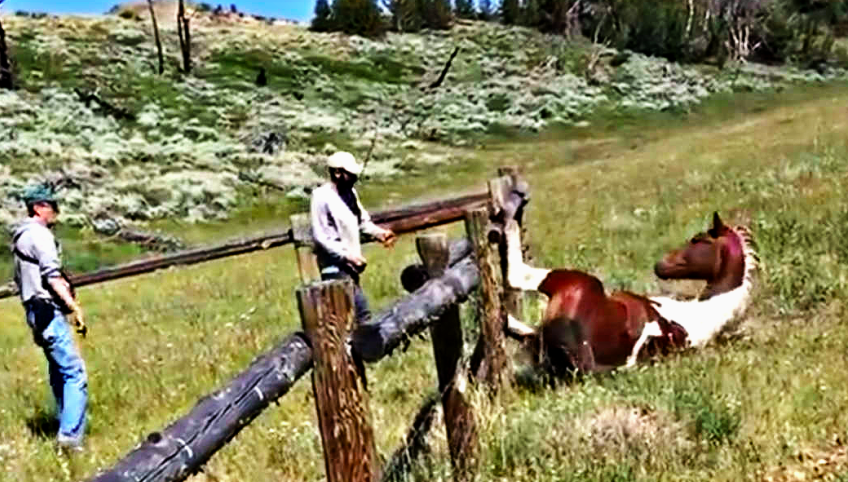 Man Gently Rescues The Wild Horse Stuck In A Fence